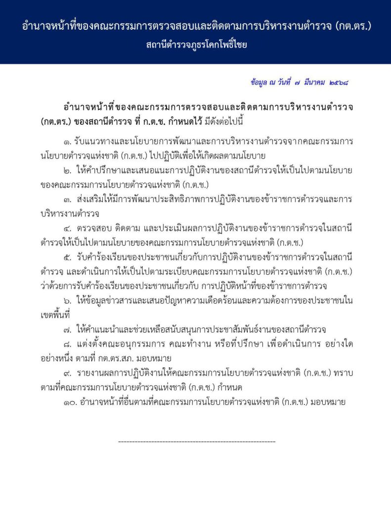 คำสั่งคณะกรรมการตรวจสอบและติดตามการบริหารงานตำรวจ สภ.โคกโพธิ์ไชย